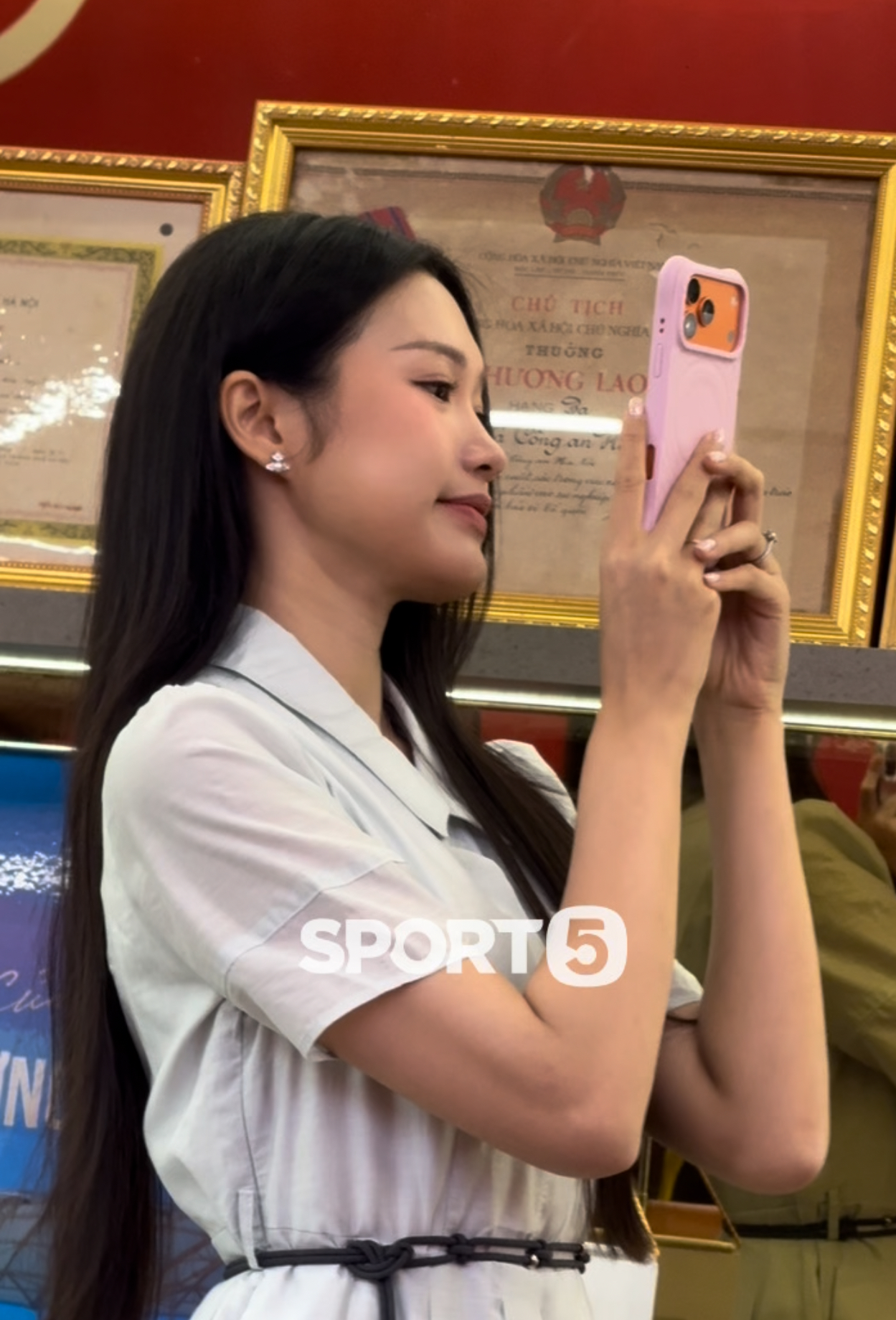 Hải My chụp ảnh cho Văn Hậu cùng đồng đội
